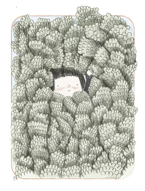 The ‘Hiding’ series is a deeply personal exploration of seeking refuge in oneself. Each piece captures a moment of retreat, a quiet pause in which to breathe and gather strength. The series is an invitation to acknowledge those times when we need to step away from the noise and find comfort within our own world.